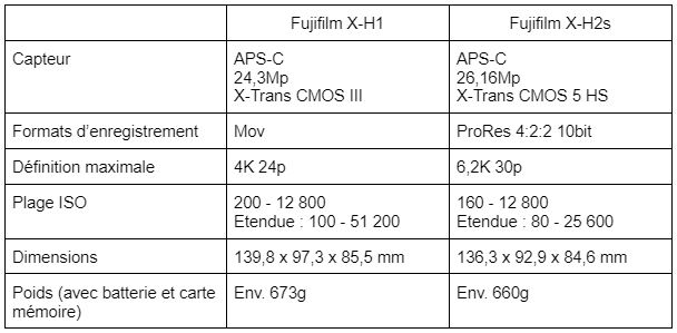 En apparence, le nouveau boîtier reste assez semblable à son prédécesseur, le X-H1 (à gauche). On retrouve la poignée sur la droite assez imposante permettant de bien saisir le boîtier, un écran LCD articulé permettant d’avoir toujours un regard sur les réglages du boîtier, le tout pour des dimensions et poids semblables.