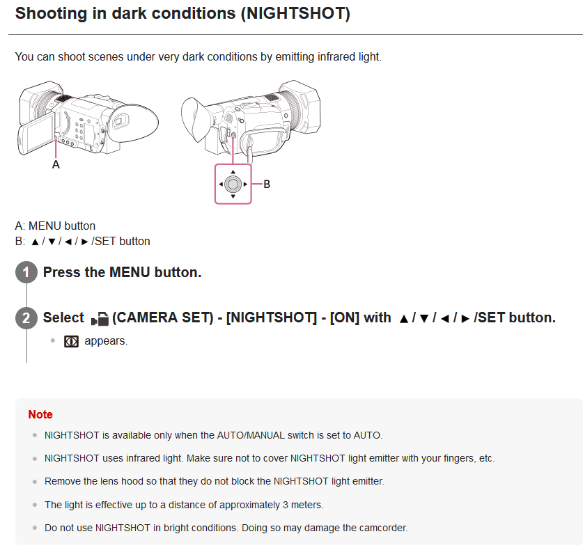 L'autre truc qui me plaît aussi chez Sony c'est la fonction nighshot. Je m'en sers ultra exceptionnellement mais je préfère savoir que j'ai cette option.