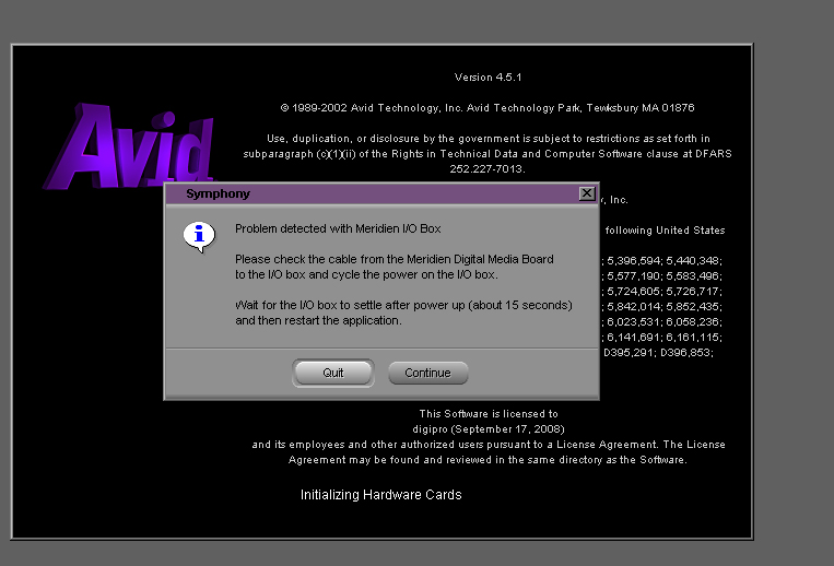 [Problème] Erreur méridien Avid sumphony