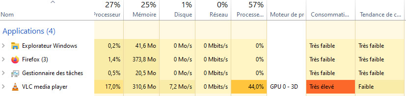 Pour voir l'usage des ressources, c'est dans l'onglet "Performance" du gestionnaire de tâches qu'il faut aller. Ici sont listées toutes les ressources (disques, CPU, RAM, réseau, GPU...)