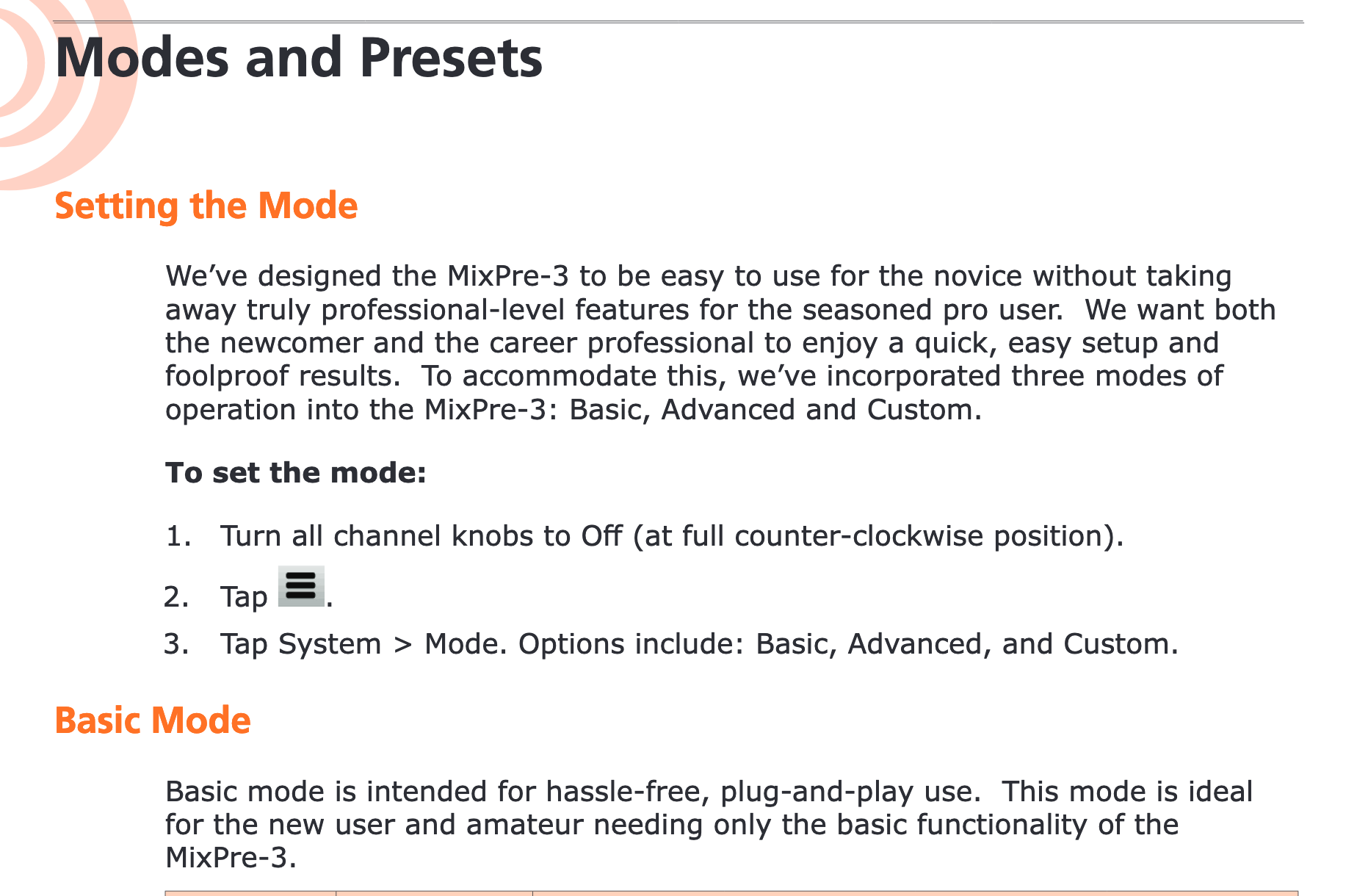 Mixpre 3 : impossible de choisir un MODE