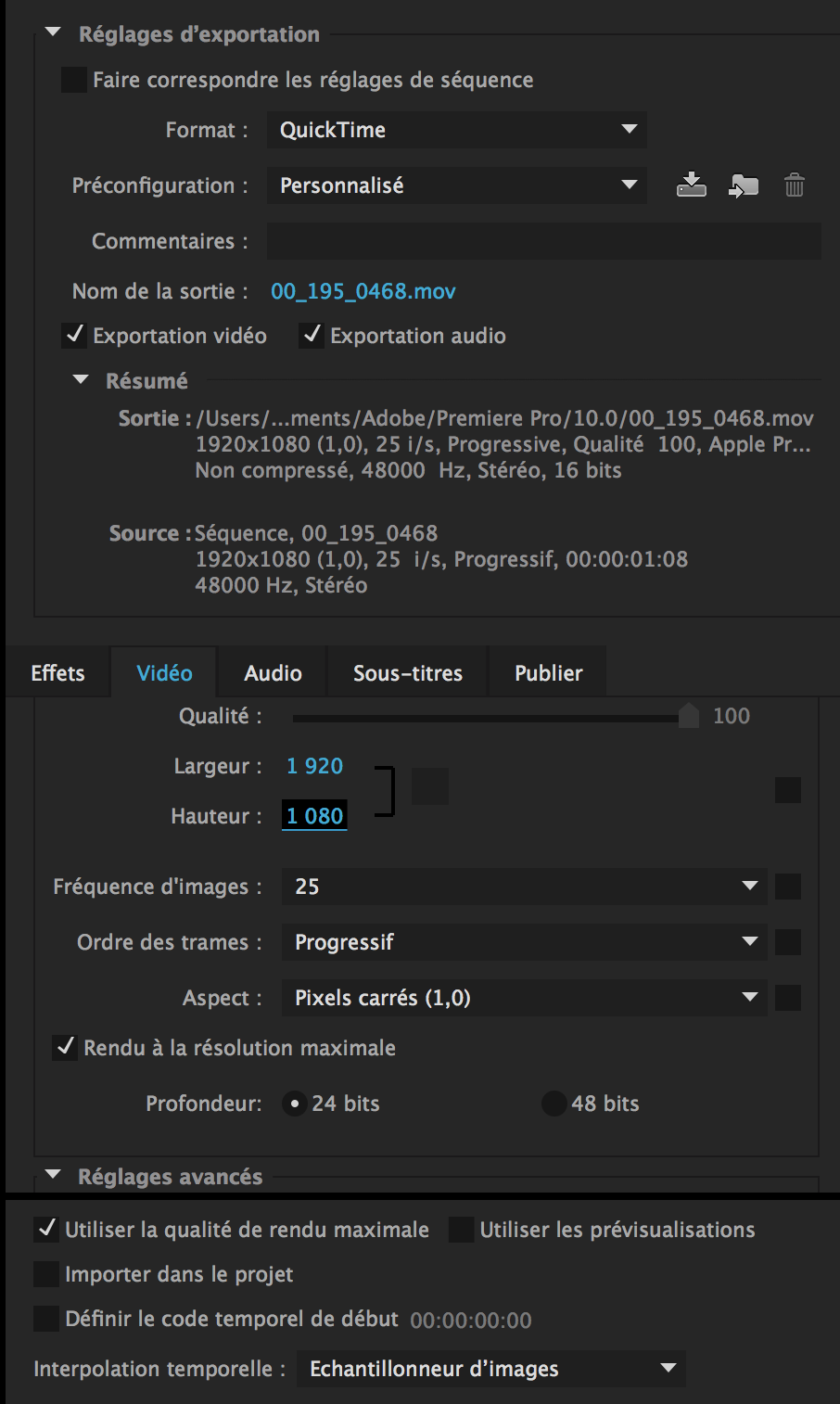 Premiere cc colorimetrie vidéo exporté ne correspond pas à étalonnage dans premiere