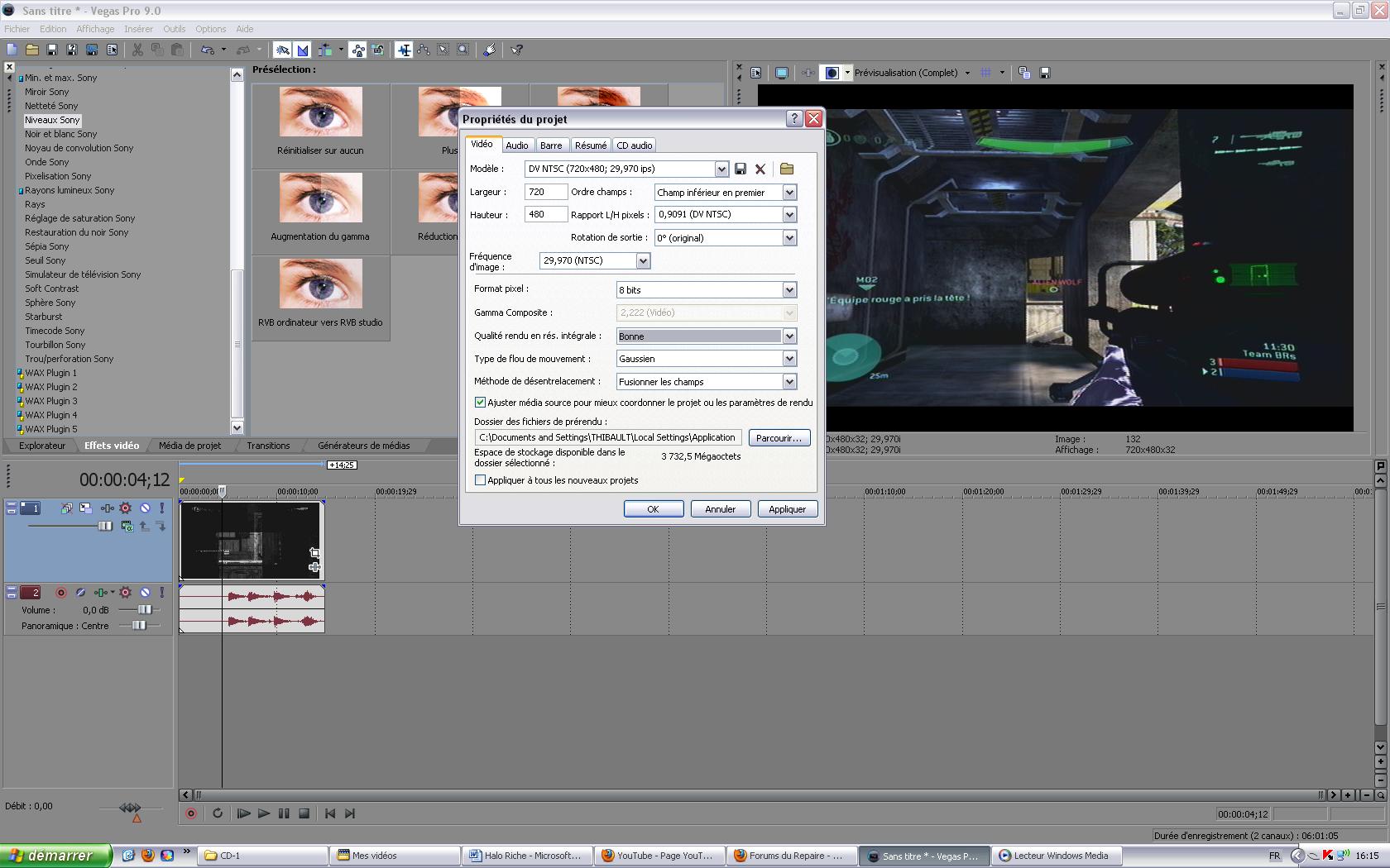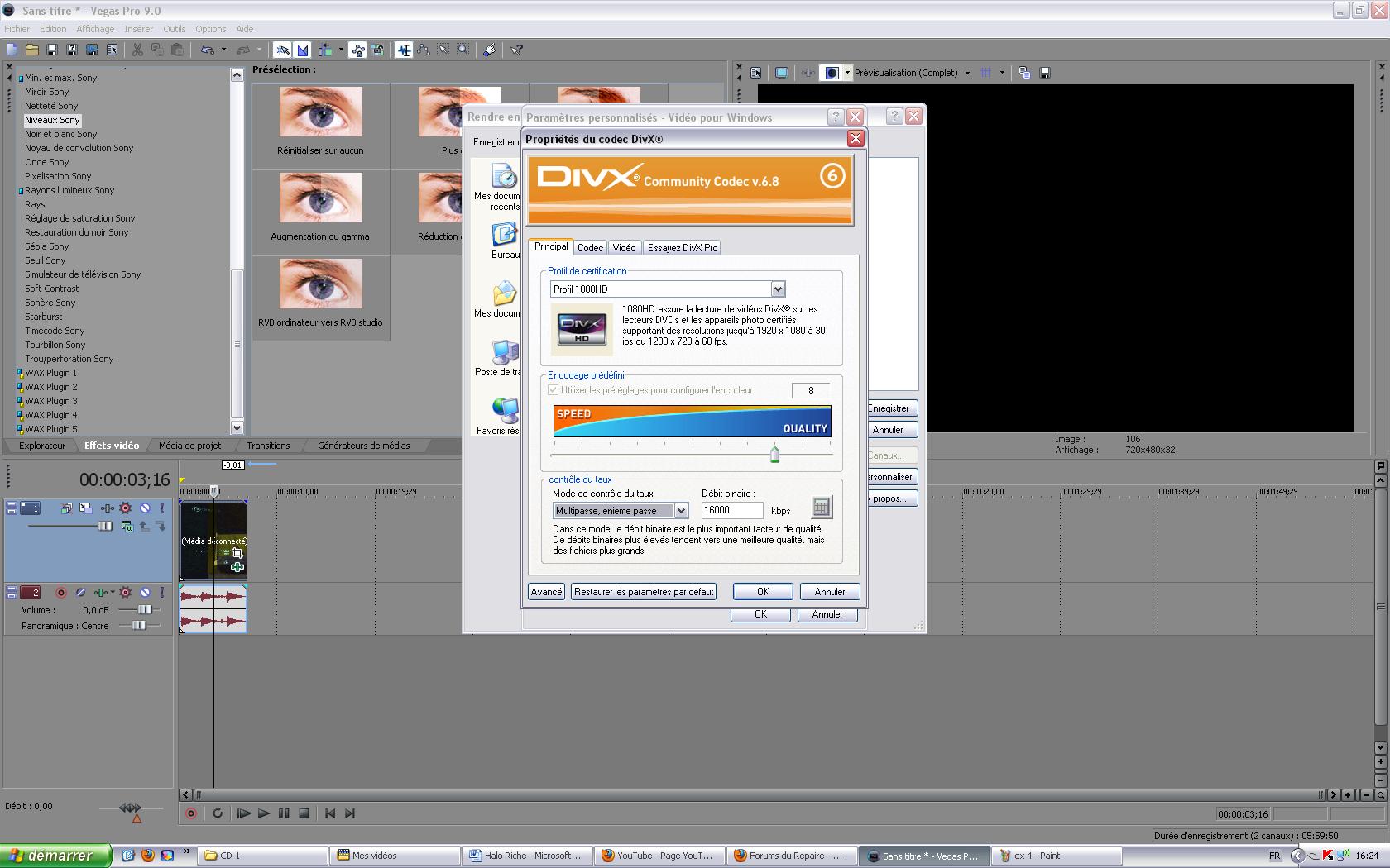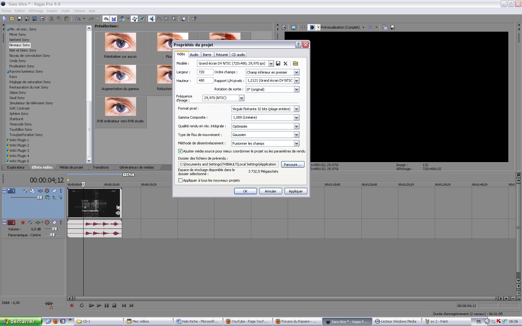 Problème pour encoder sous vegas 9