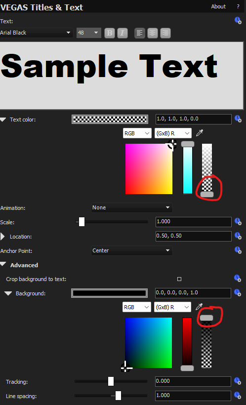 Sony Vegas 17, comment faire un Text transparent ?