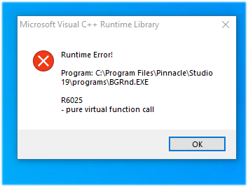 Studio 19 Runtime Error R6025