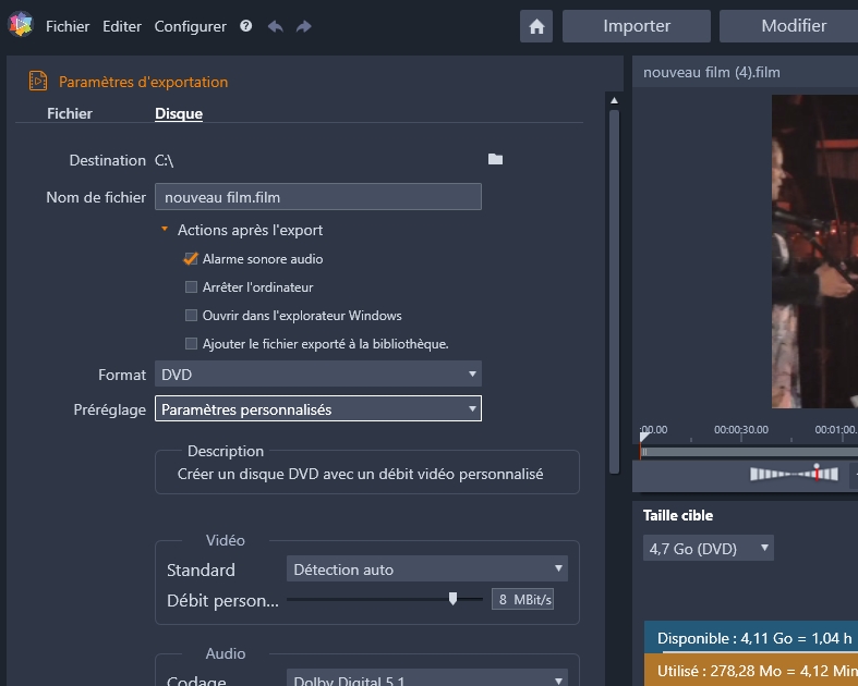 Studio 22 problème export disque