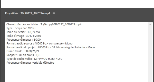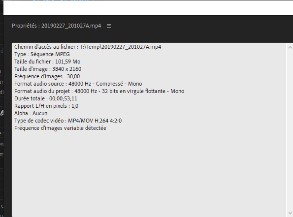 [Problème] Vidéo accélérée et donc durée raccourci à l'importation Premiere Pro CC 2020
