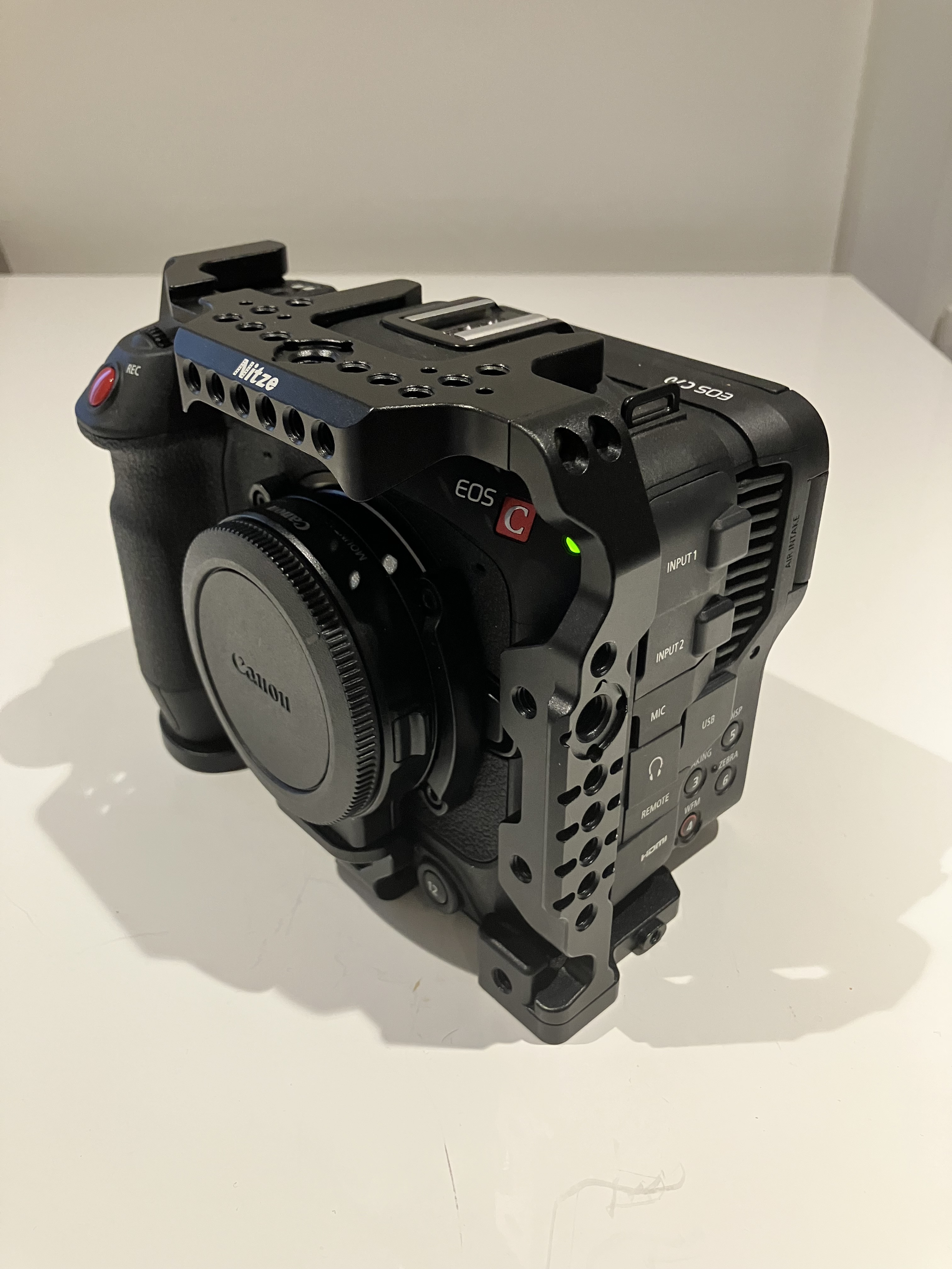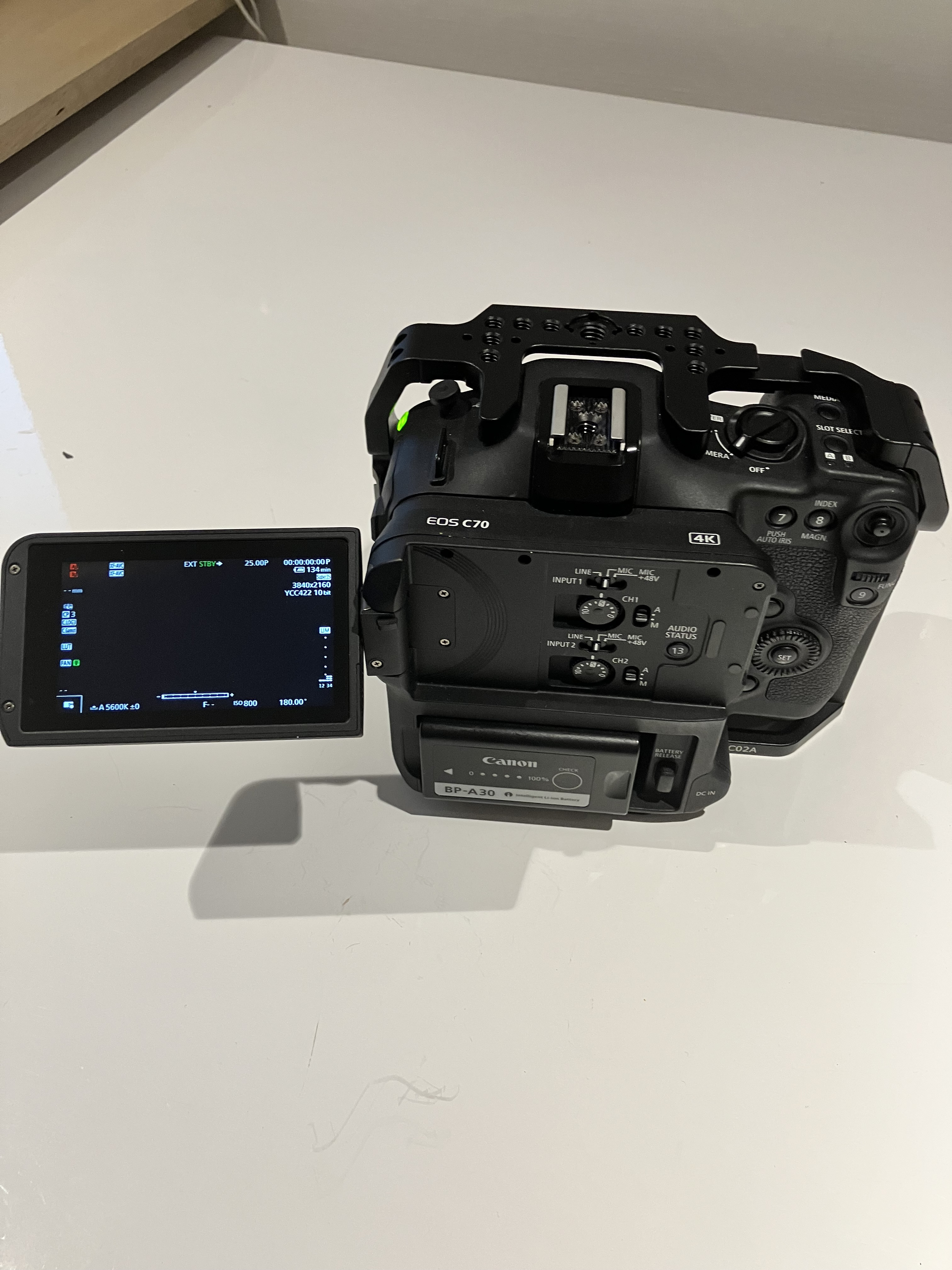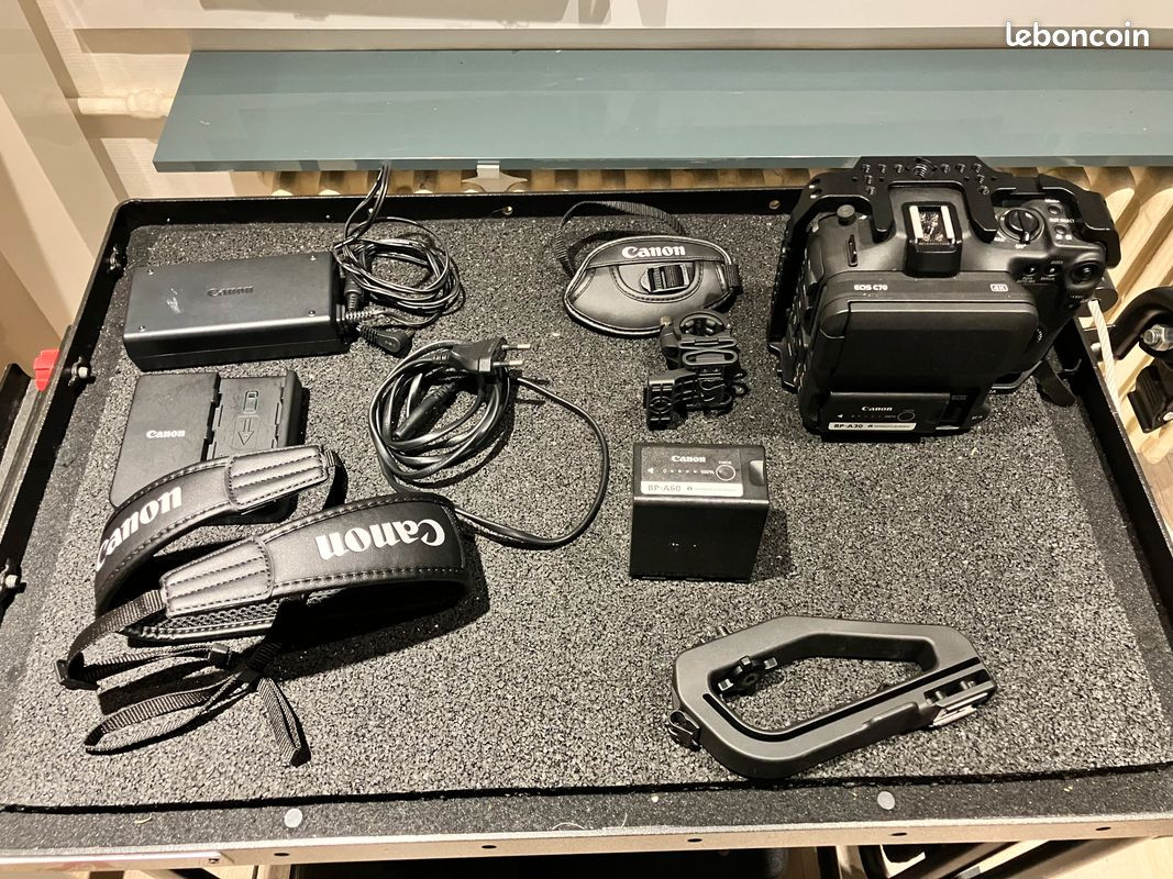 Je vends ma Canon EOS C70, 193 heures au compteur, avec cage Nitze et bague d'adaptation Canon EF vers RF avec réduction de focale 0,71x.
