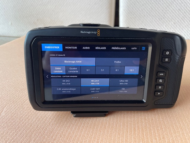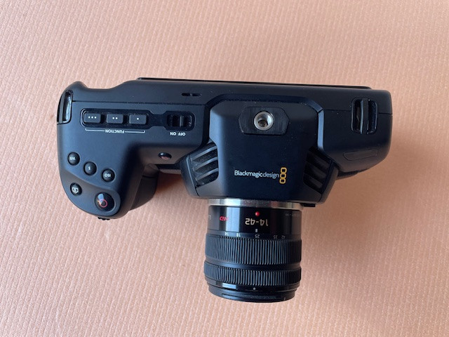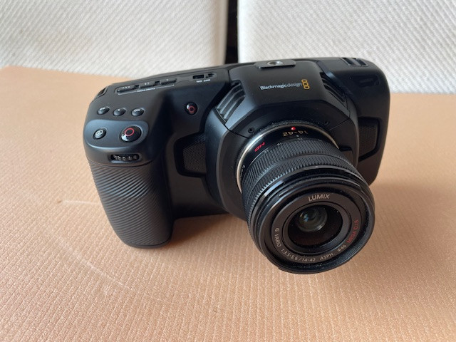 Caméra Blackmagic bmpcc4k en parfait état, vendue avec son objectif lumix 12-42, équivalent à 28/84 plein format. Excellent état, tout est fonctionnel, micros internes stéréo, prise xlr avec alimentation phantom, raw Blackmagic. Très belle image cinéma. Avec une batterie.