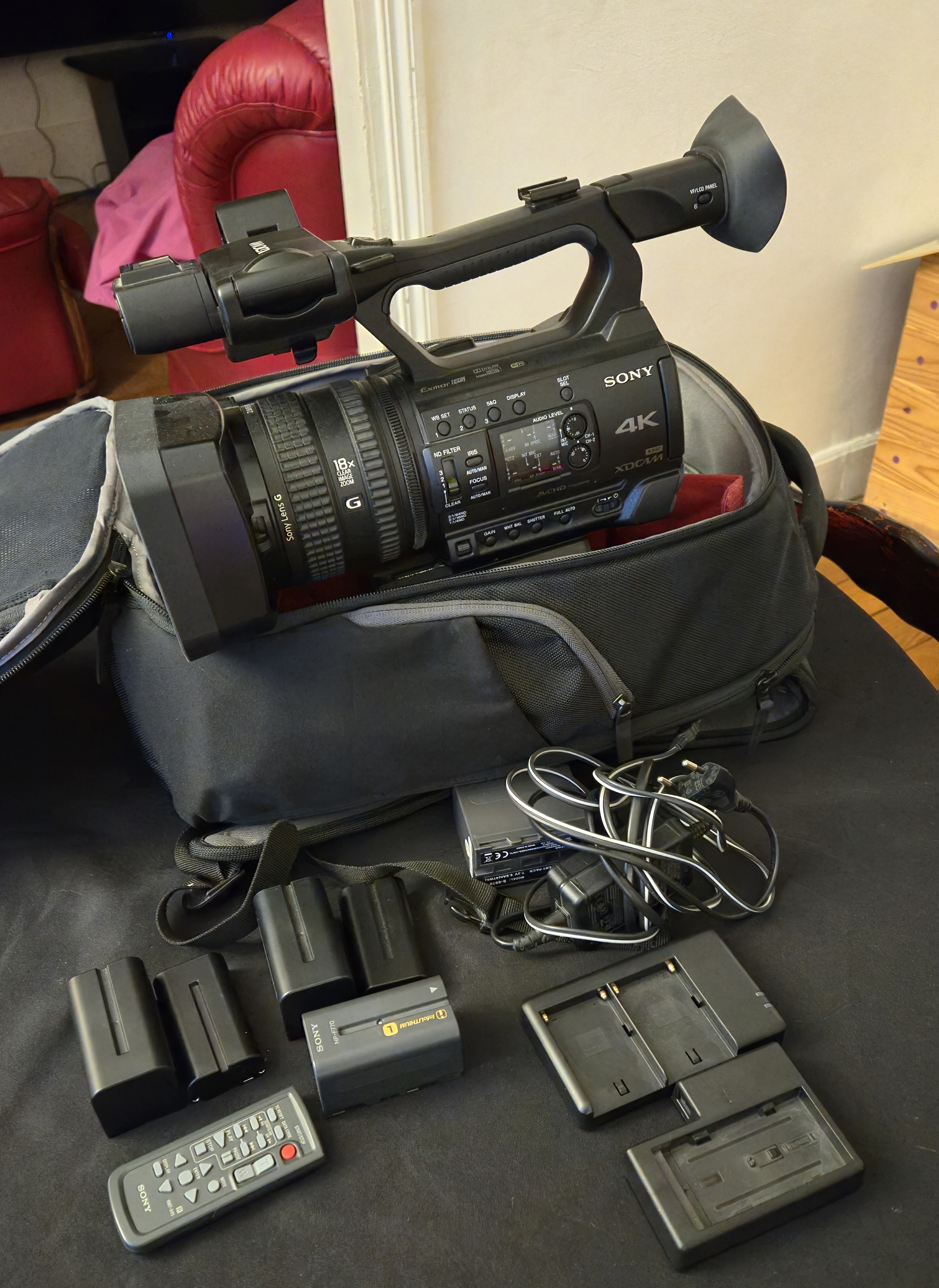 A vendre La caméra+ Sac de transport + chargeurs de Batterie + télécommande + diverses Batteries en très très bon état.