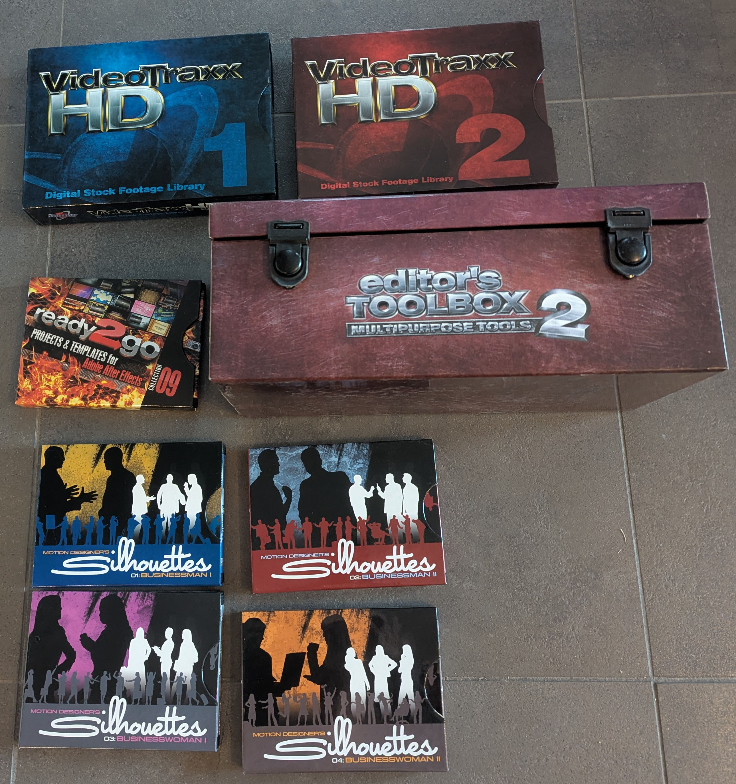 Important lot de contenu pour la post production vidéo. Ces DVD de la collection Digital Juice contiennent des élements pour rendre vos montages vidéos professionnel: Musique libre de droit (soud fx, musoc box, stach traxx) Vidéo d'illustration libre de droit (Videotraxx) Animation de texte (Fonts) Motion design : (Compositor's toolkit), Editor's toolkit) Trucage image : Matte magic Plus de 500 DVDs